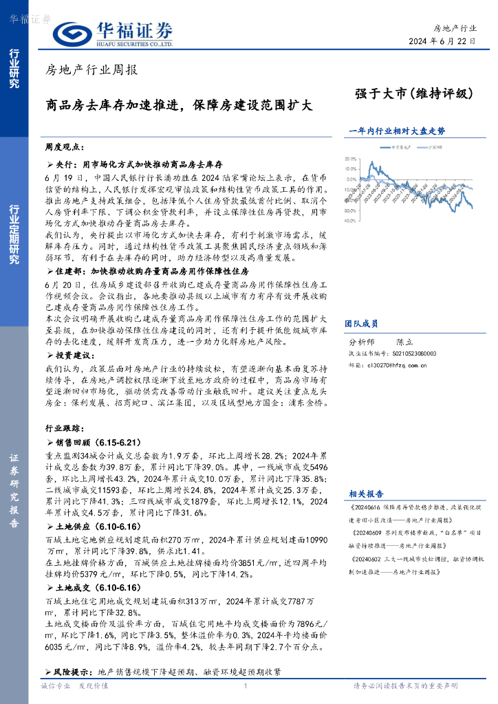 华福证券:房地产行业周报:商品房去库存加速推进,保障房建设范围扩大.pdf