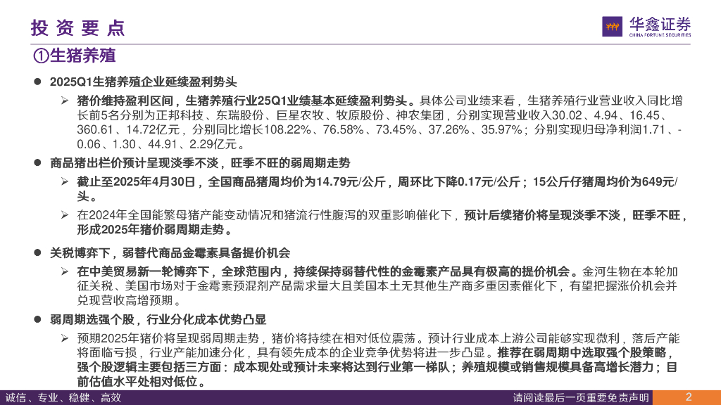 华鑫证券:农林牧渔行业周报:生猪养殖Q1盈利延续,弱周期选强个股宠物&运动鞋服持续跟踪内需和关税政策.pdf