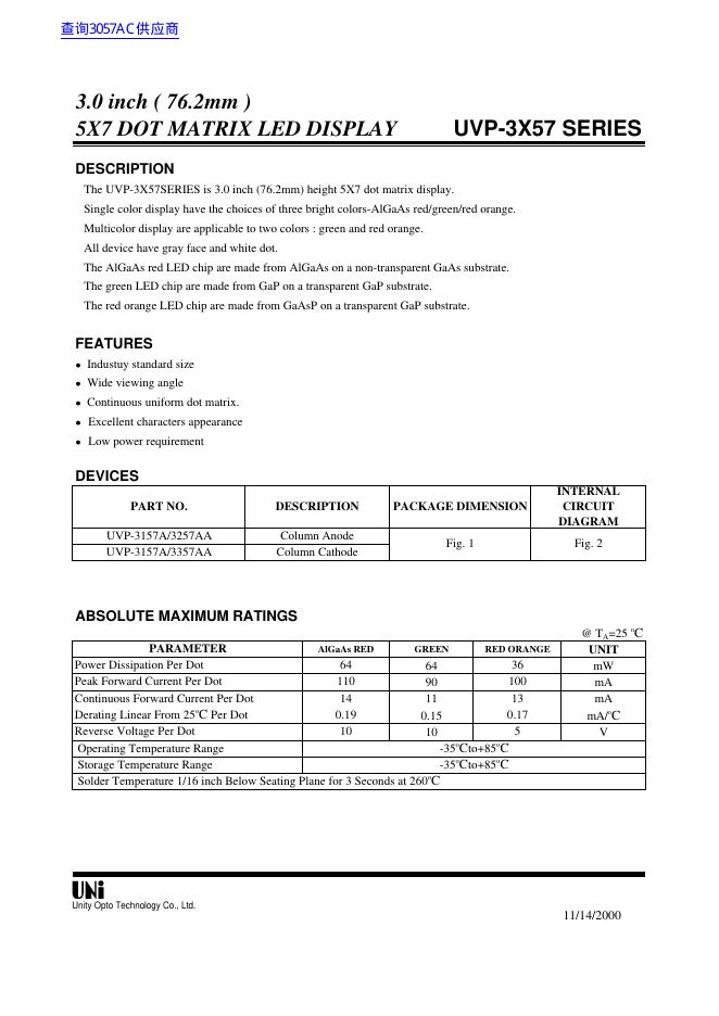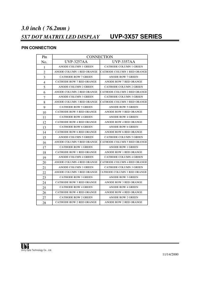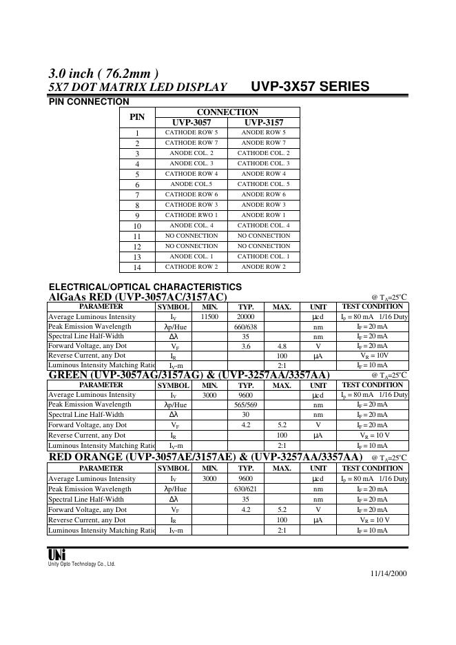 UNi UVP-3X57 SERIES 5X7 DOT MATRIX LED DISPLAY 数据手册.pdf
