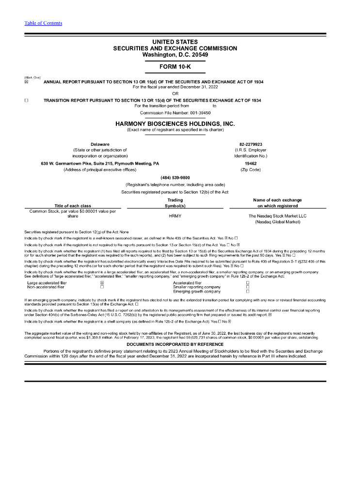 Harmony Biosciences Holdings, Inc.(HRMY)2022财年年度报告(英文版).pdf