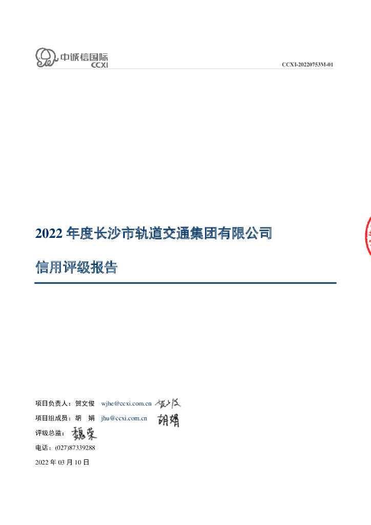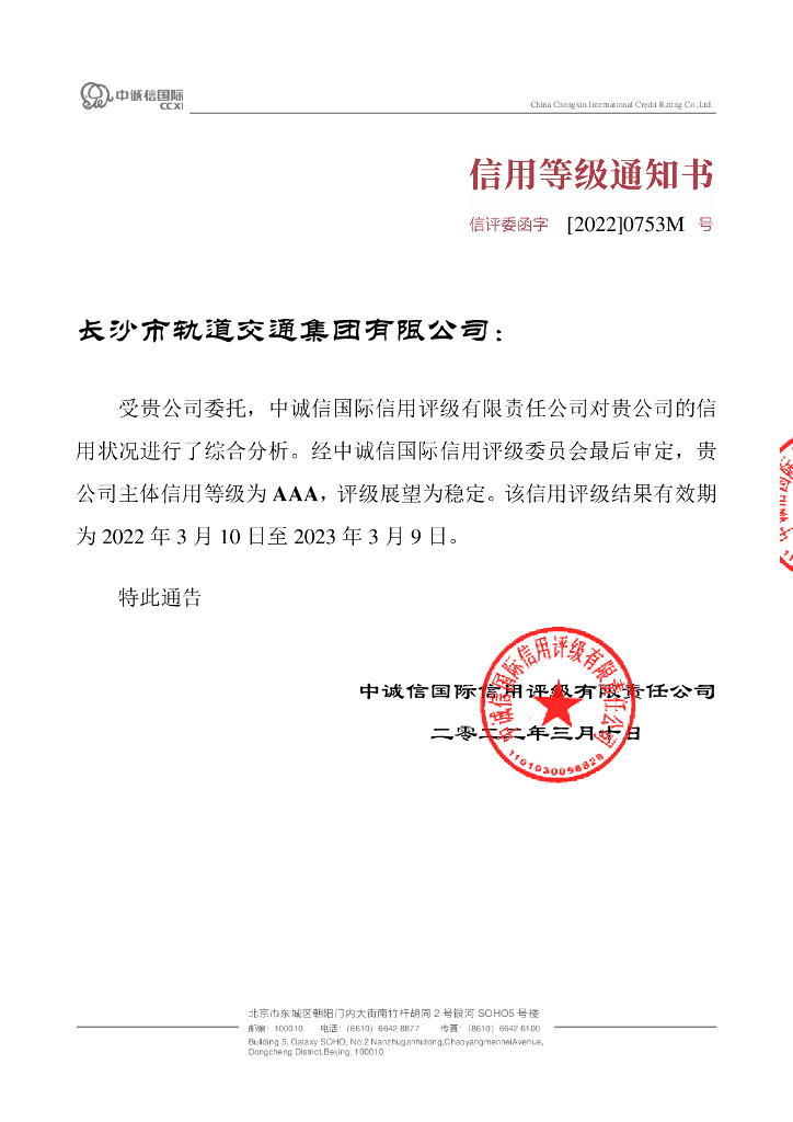 中诚信:长沙市轨道交通集团有限公司2022年度信用评级报告.pdf