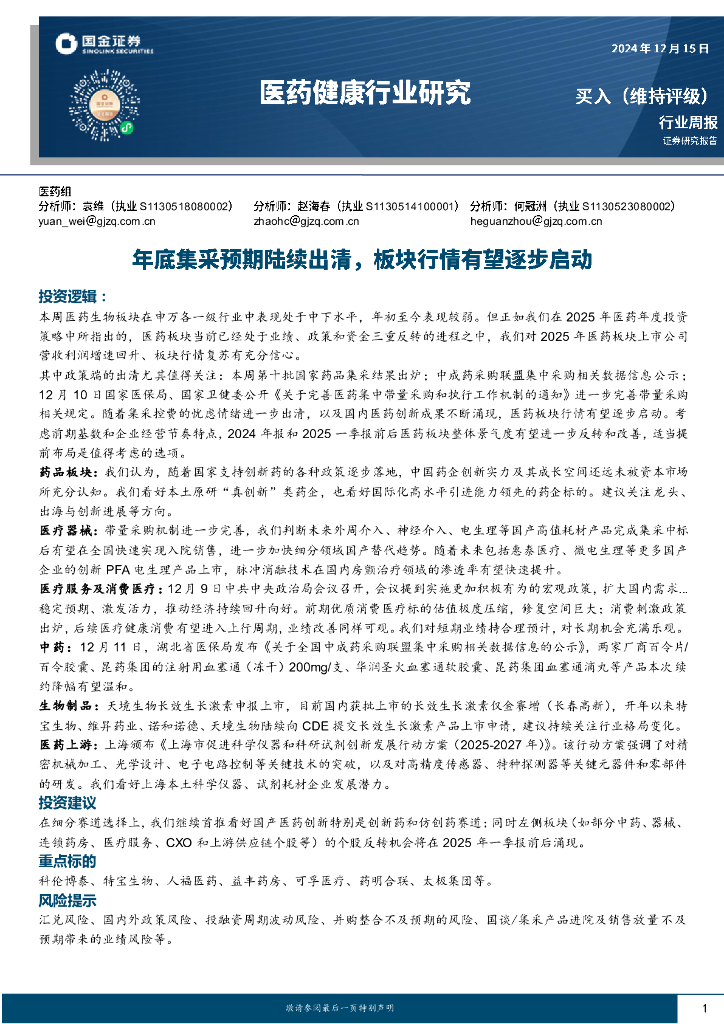 国金证券:医药健康行业研究:年底集采预期陆续出清,板块行情有望逐步启动.pdf