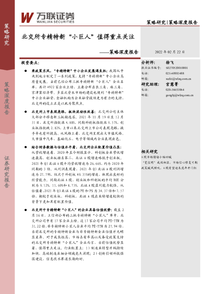 万联证券:策略深度报告:北交所专精特新“小巨人”值得重点关注.pdf