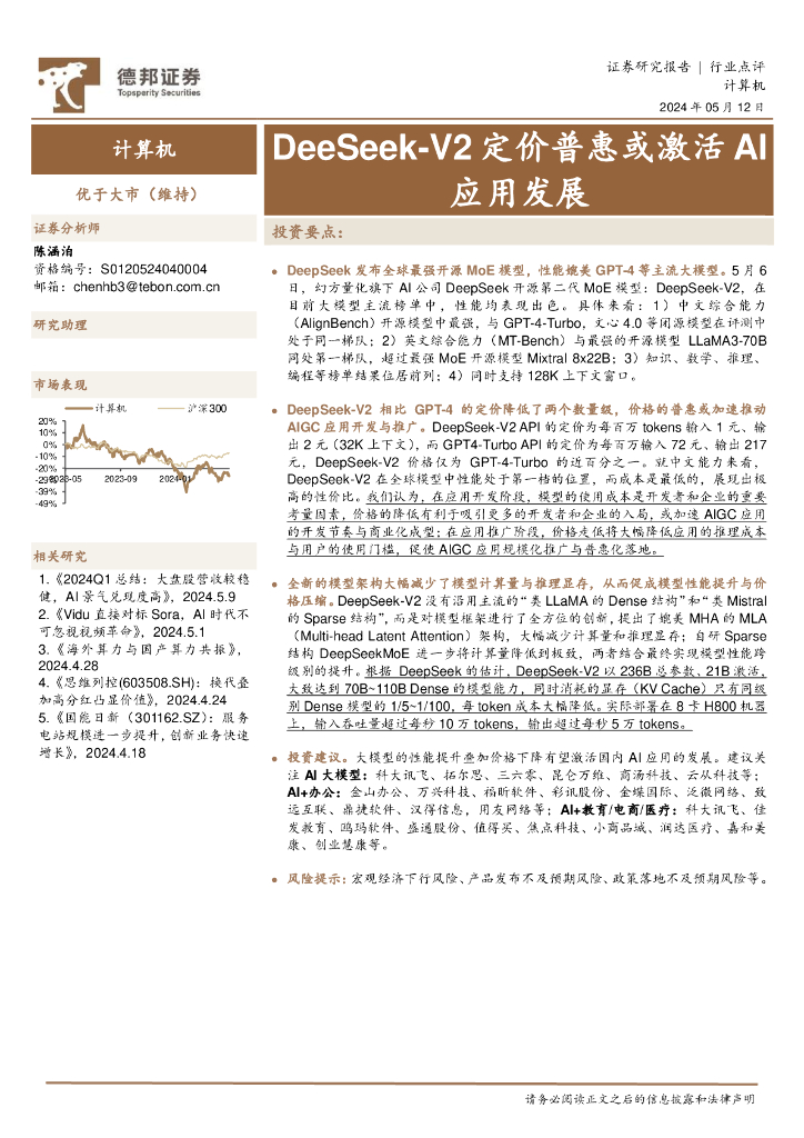 德邦证券:计算机行业点评:DeeSeek-V2定价普惠或激活AI应用发展.pdf