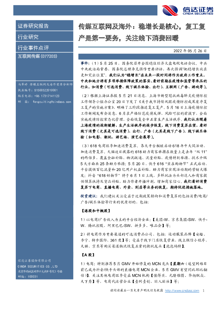 信达证券:传媒互联网及海外:稳增长是核心,复工复产是第一要务,关注线下消费回暖.pdf