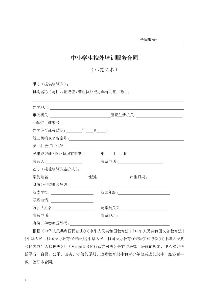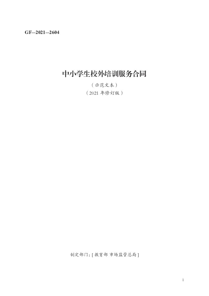 GF-2021-2604 教育部:中小学生校外培训服务合同(示范文本).pdf