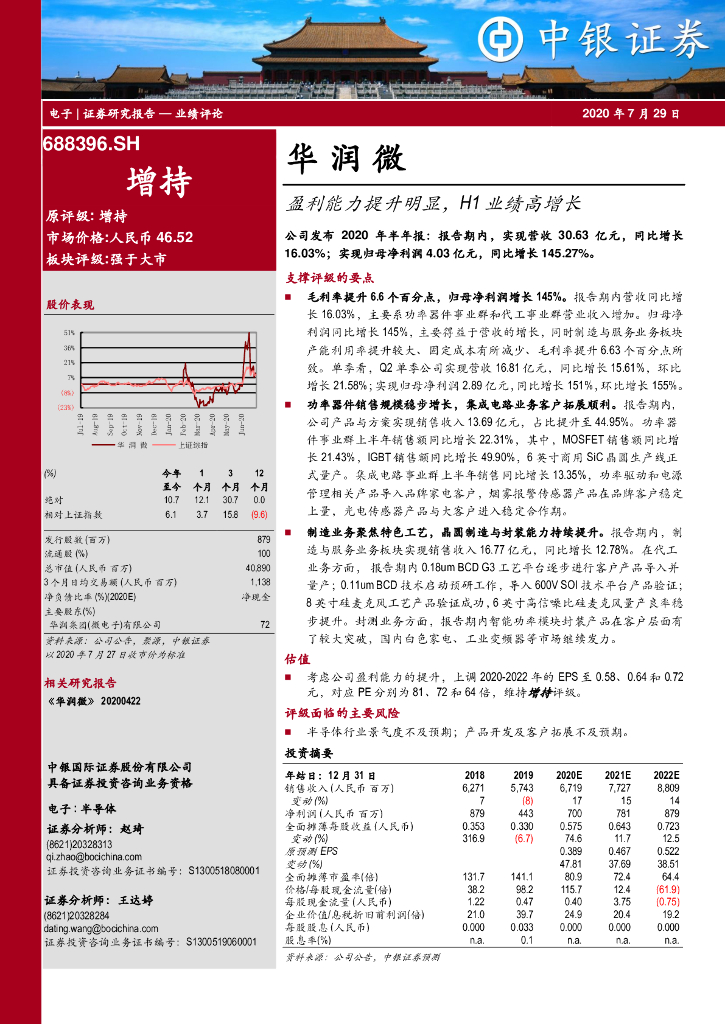 中银证券:华润微(688396)-盈利能力提升明显,H1业绩高增长.pdf