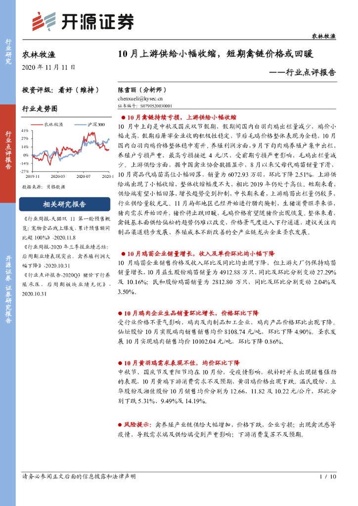 开源证券:农林牧渔行业点评报告:10月上游供给小幅收缩,短期禽链价格或回暖.pdf