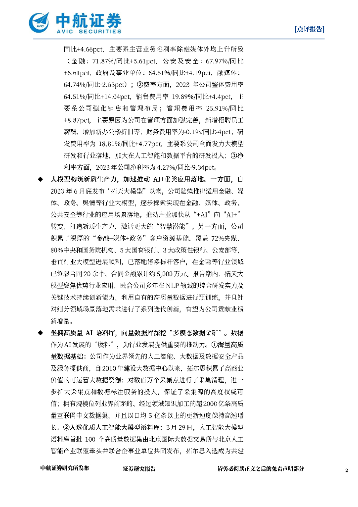 中航证券:拓尔思(300229)-“拓天大模型”为基,领跑AI+垂类应用.pdf