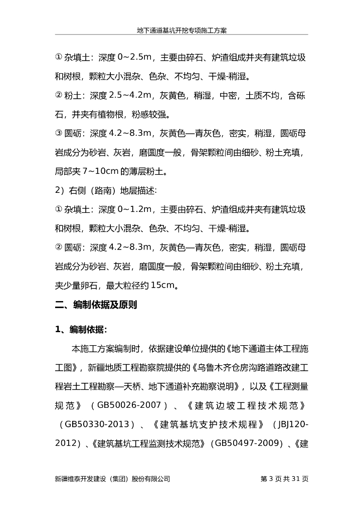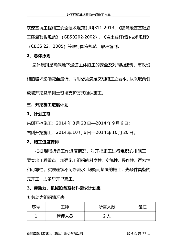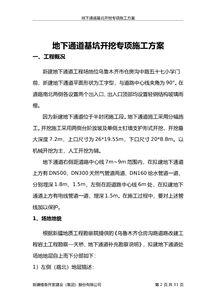 地下通道基坑放坡开挖及土钉墙支护专项施工方案.doc