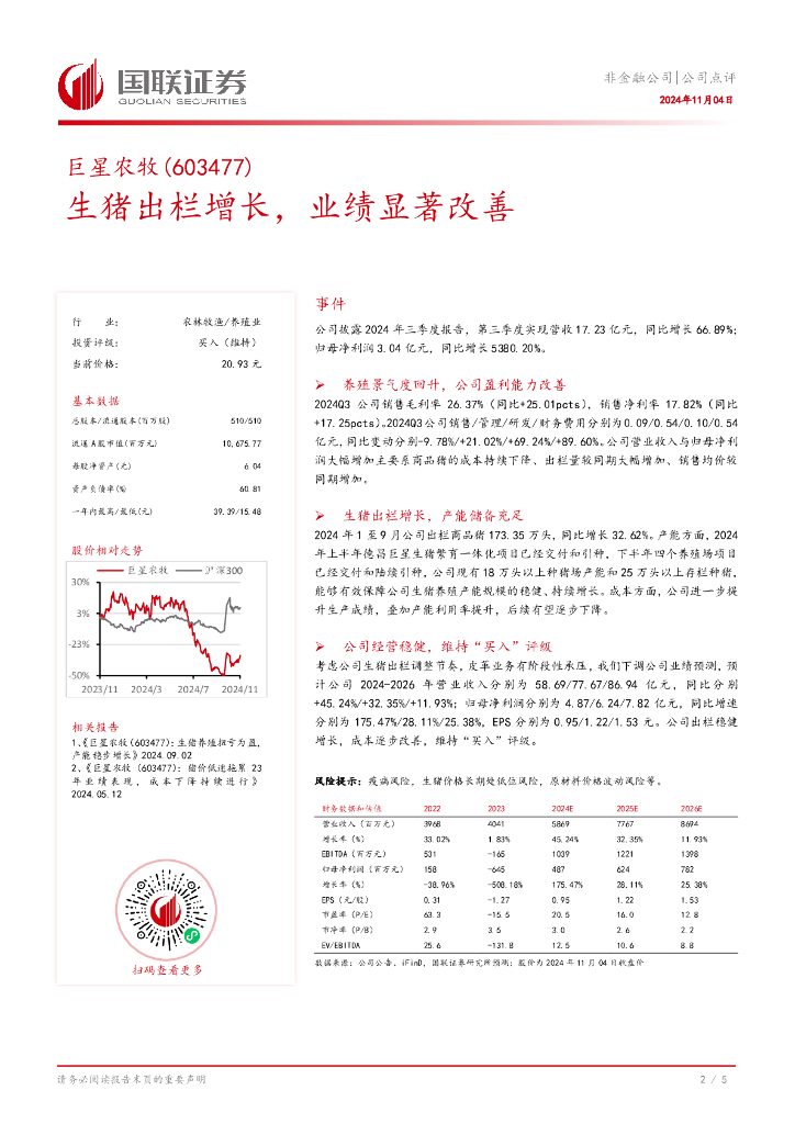 国联证券:巨星农牧(603477)-生猪出栏增长,业绩显著改善.pdf