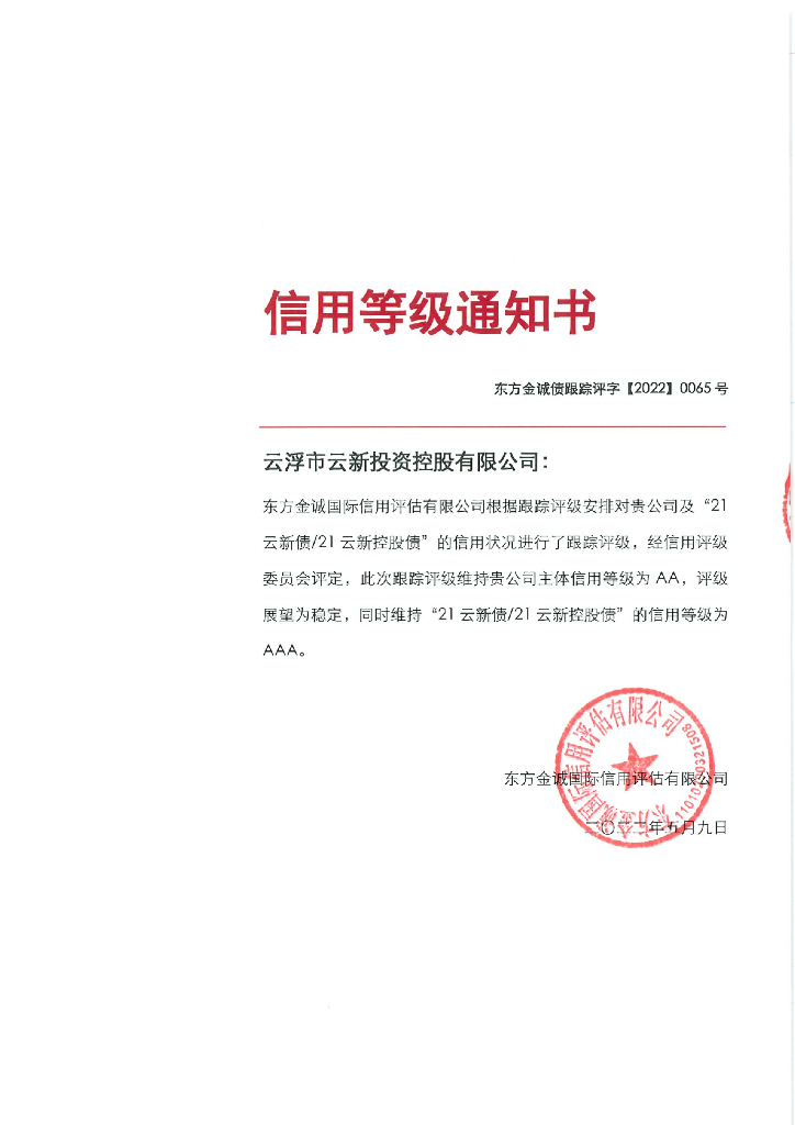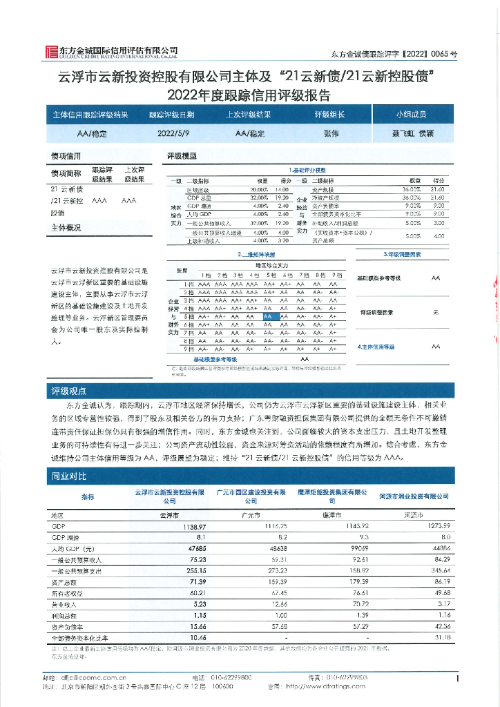 东方金诚:云浮市云新投资控股有限公司主体及“21云新债21云新控股债”2022年度跟踪信用评级报告.pdf