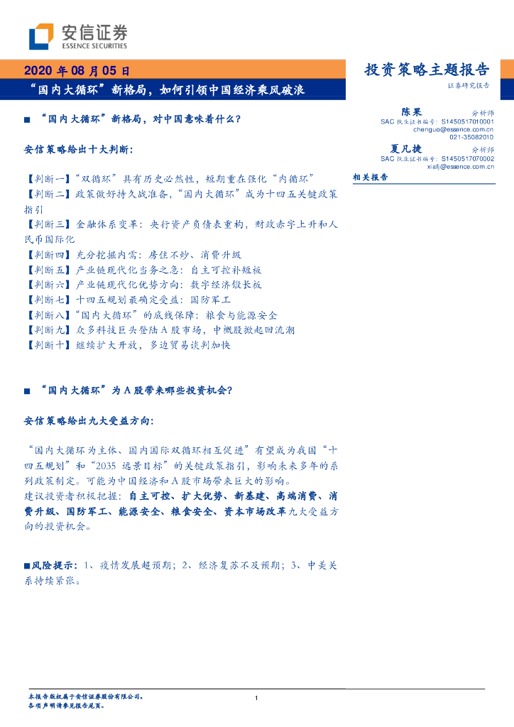 安信证券:“国内大循环”新格局,如何引领中国经济乘风破浪.pdf