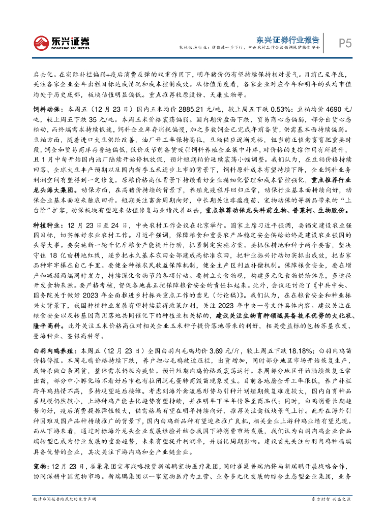 东兴证券:行业周观点(2022年51周):农林牧渔行业:猪价进一步下行,中央农村工作会议强调保障粮食安全.pdf