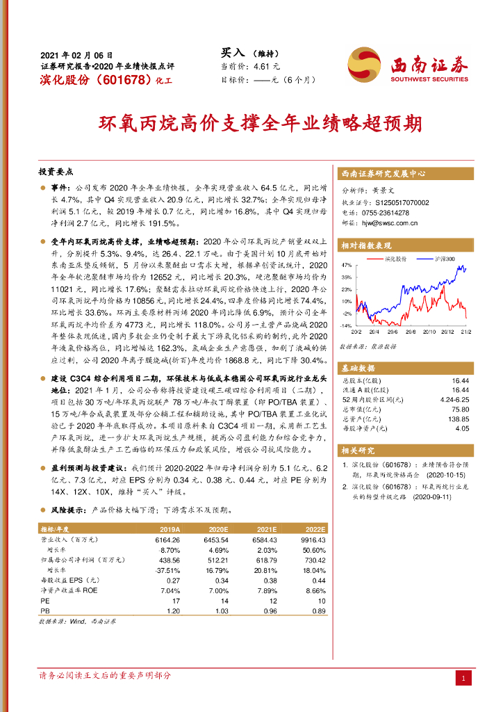 西南证券:滨化股份(601678)-环氧丙烷高价支撑全年业绩略超预期.pdf