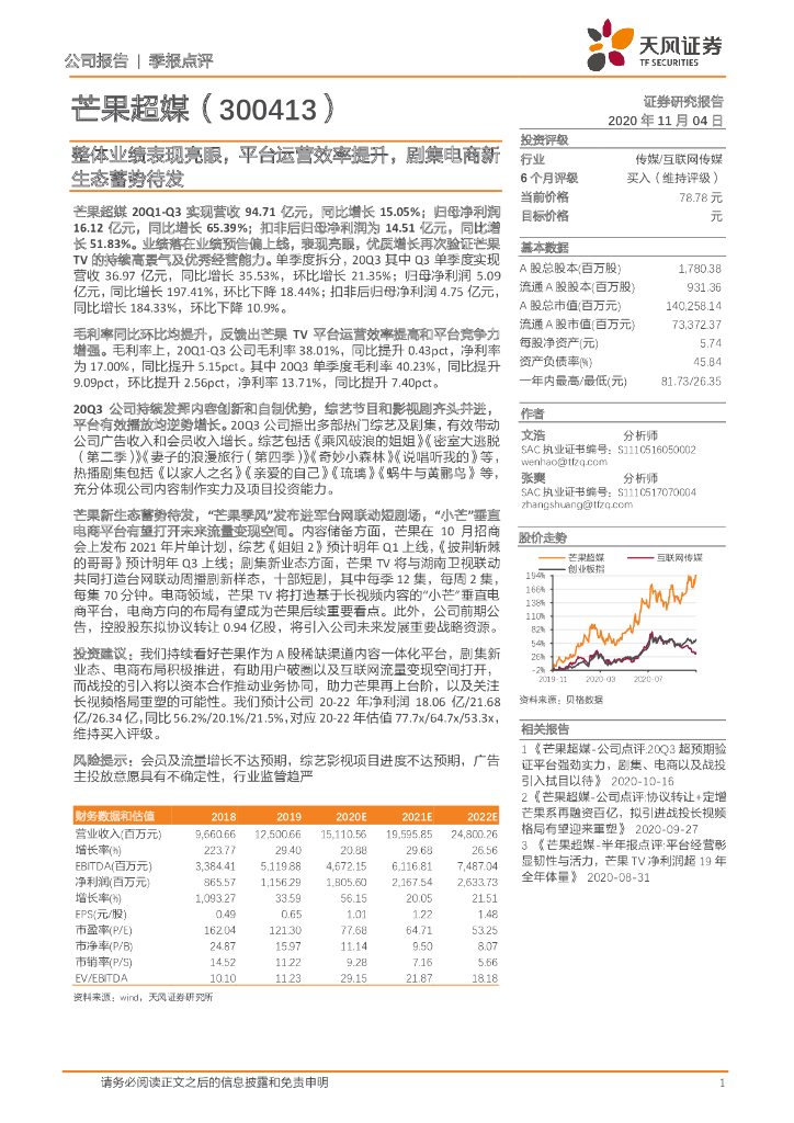 天风证券:芒果超媒(300413)-整体业绩表现亮眼,平台运营效率提升,剧集电商新生态蓄势待发.pdf