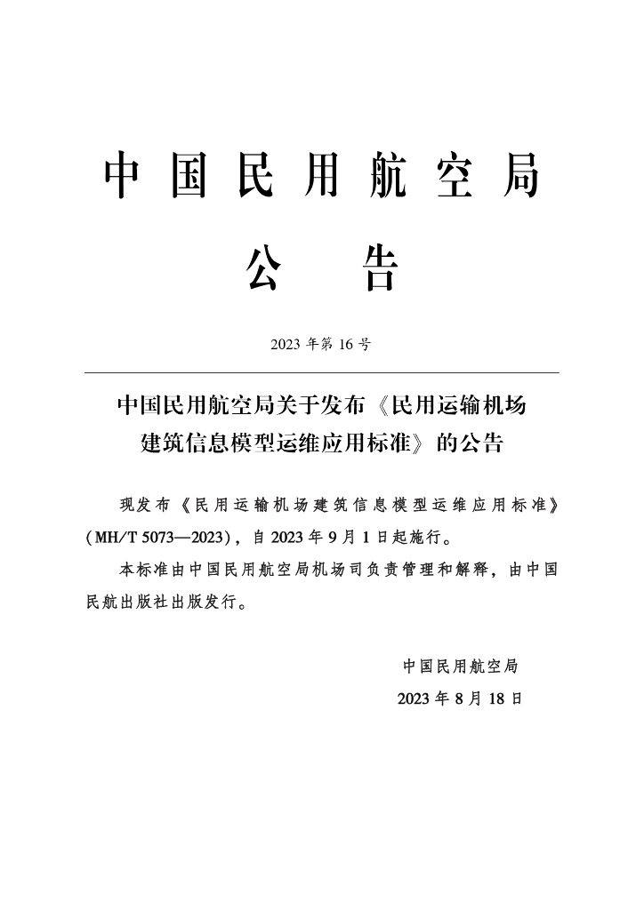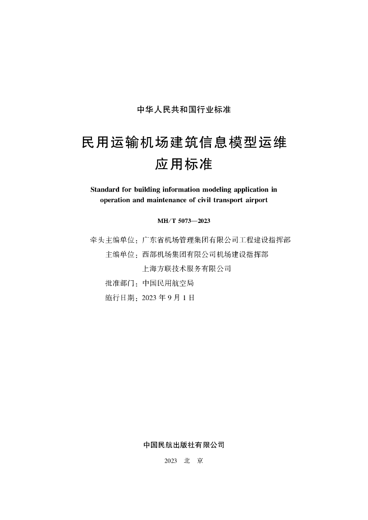 2023民用运输机场建筑信息模型运维应用标准.pdf