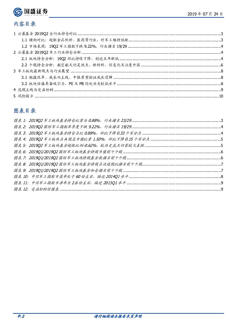 国盛证券:国防军工行业专题研究:19Q2军工持仓下降,新材料及信息化热度提升.pdf