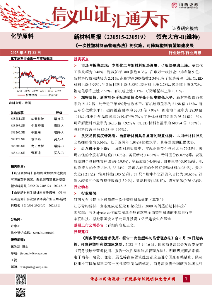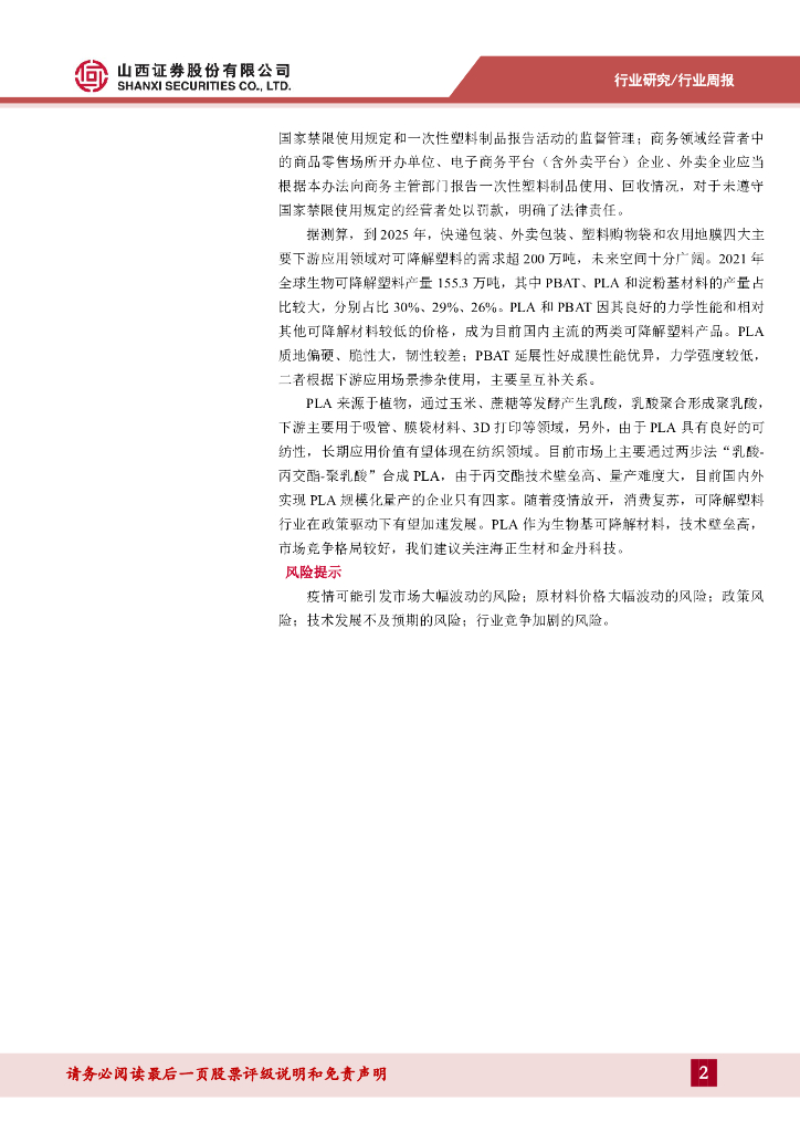山西证券:新材料周报:《一次性塑料制品管理办法》将实施,可降解塑料有望加速发展.pdf