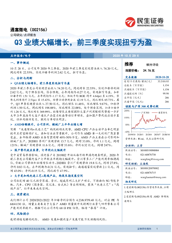 民生证券:通富微电(002156)-Q3业绩大幅增长,前三季度实现扭亏为盈.pdf