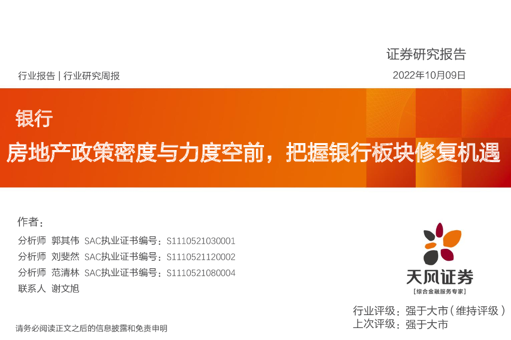 天风证券:银行行业研究周报:房地产政策密度与力度空前,把握银行板块修复机遇.pdf
