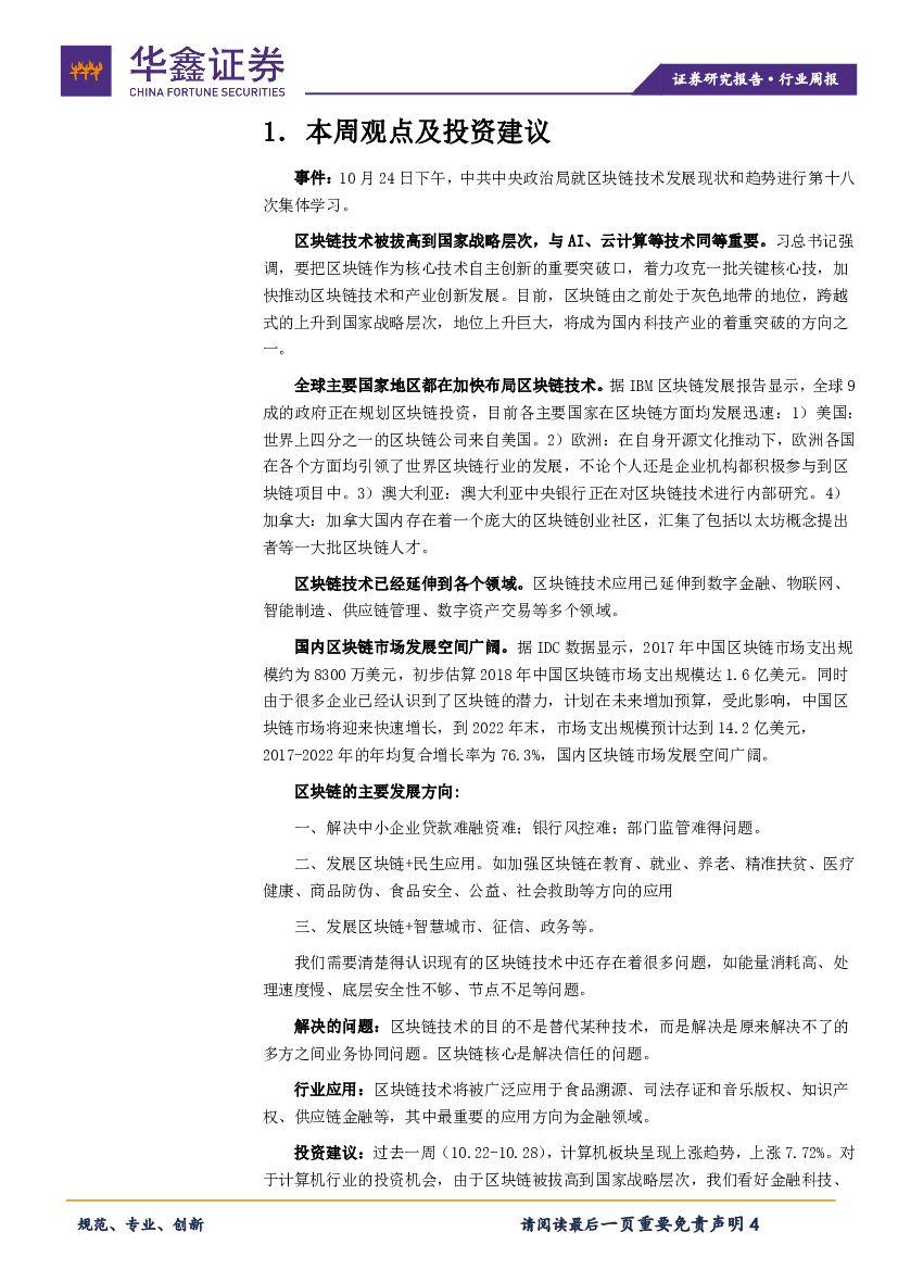 华鑫证券:计算机行业周报:区块链上升为国家战略,相关公司将迎来快速发展.pdf