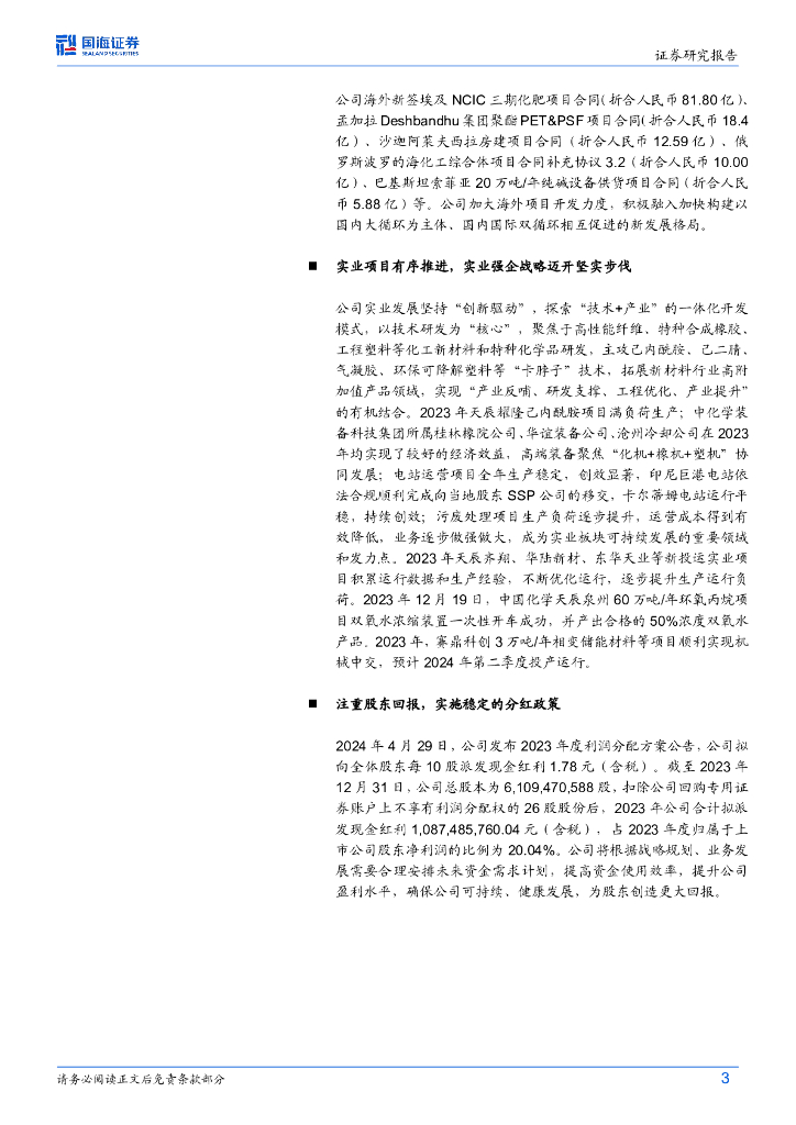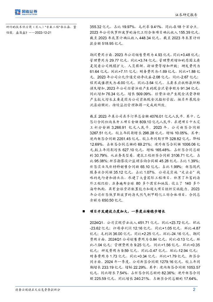 国海证券:中国化学(601117)-2023年年报及2024年一季报点评:经营业绩稳中有增,海外新签订单高速增长.pdf