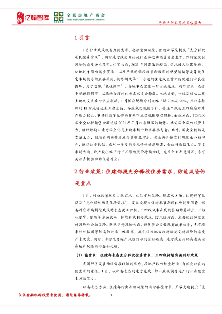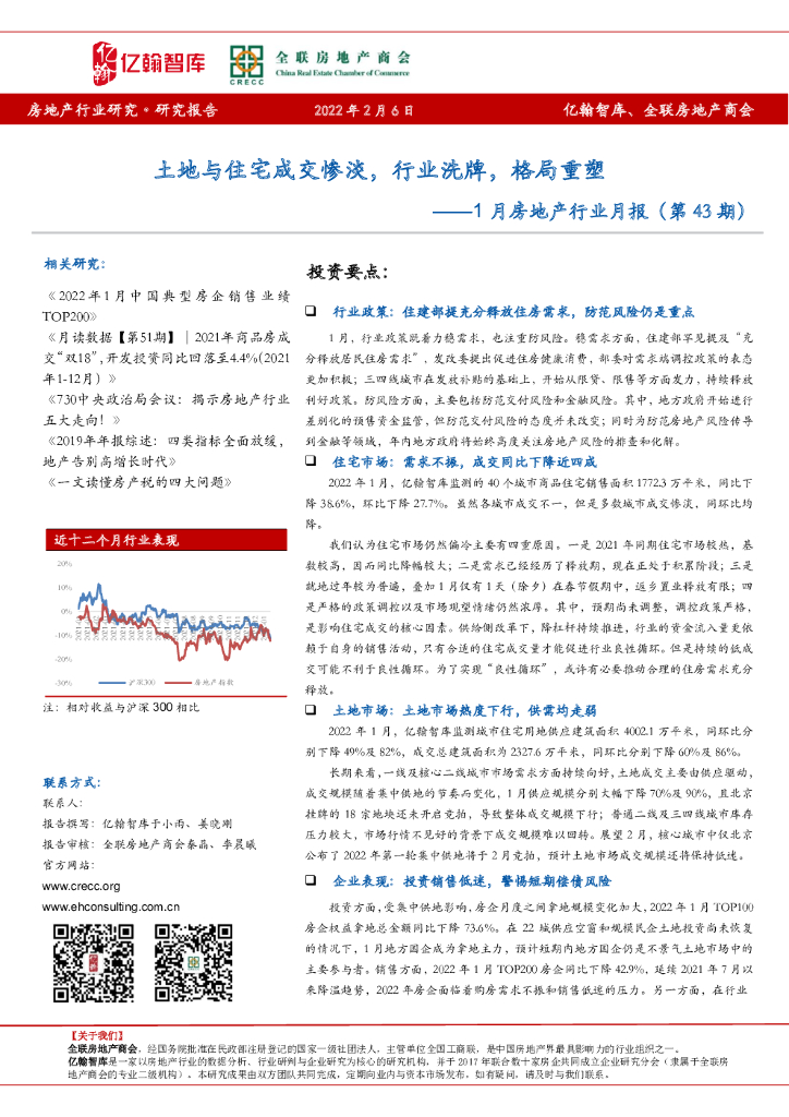 亿翰智库:1月房地产行业月报(第43期):土地与住宅成交惨淡,行业洗牌,格局重塑.pdf