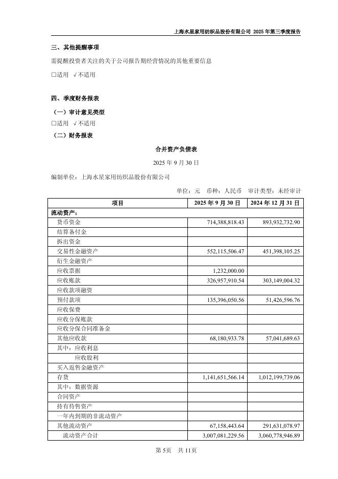 603365-水星家纺:上海水星家用纺织品股份有限公司2025年第三季度报报告.pdf