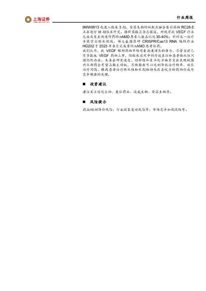上海证券:医药生物行业周报:眼科抗VEGF药物赛道火热,信达生物IBI302高剂量临床II期数据亮眼.pdf