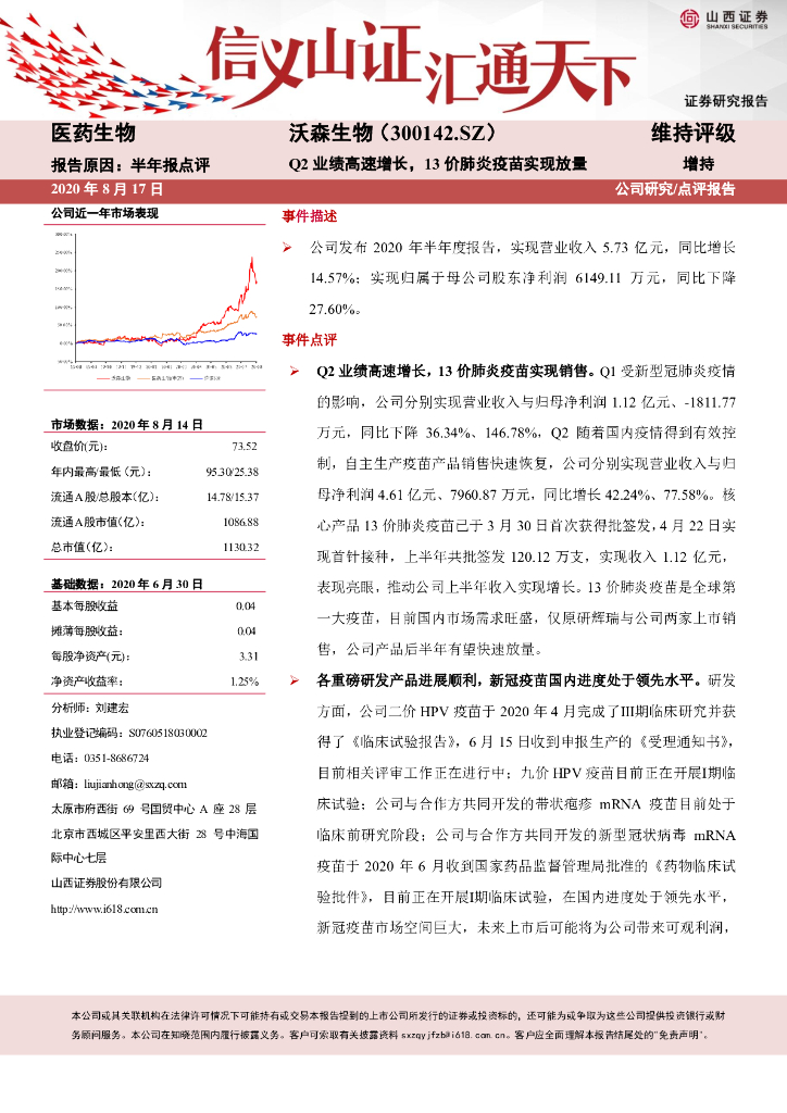 山西证券:沃森生物(300142)-Q2业绩高速增长,13价肺炎疫苗实现放量.pdf