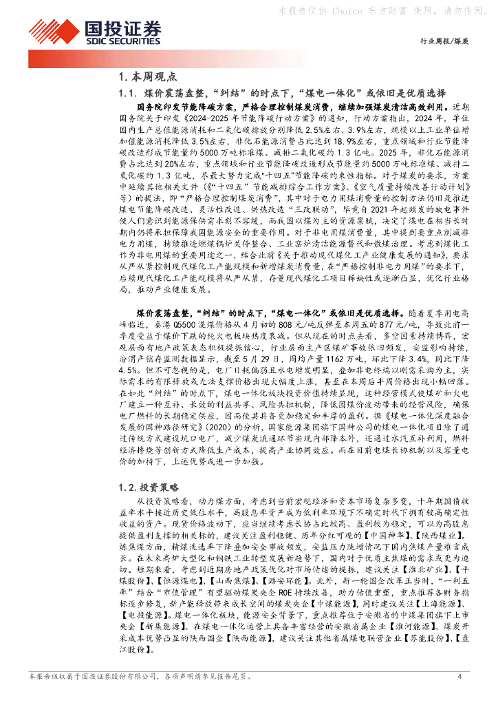 国投证券:煤炭行业周报:煤价震荡盘整,“纠结”的时点下,“煤电一体化”或依旧是优质选择.pdf