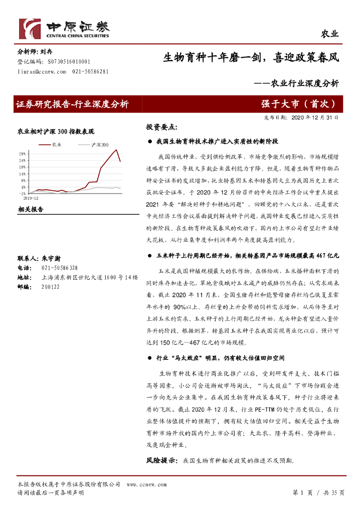 中原证券:农业行业深度分析:生物育种十年磨一剑,喜迎政策春风.pdf