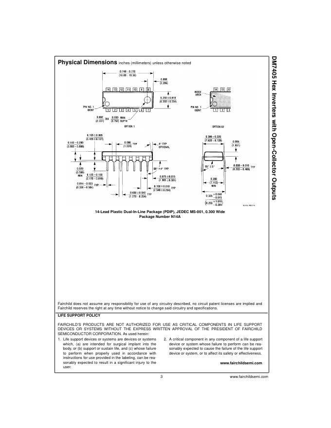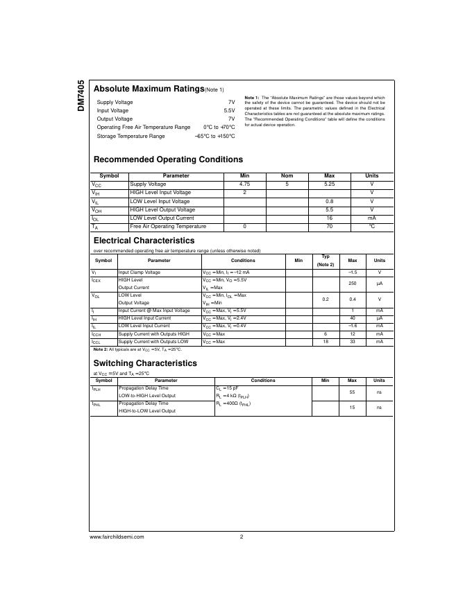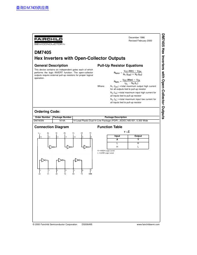 FAIRCHILD DM7405 Hex Inverters with Open-Collector Outputs 数据手册.pdf