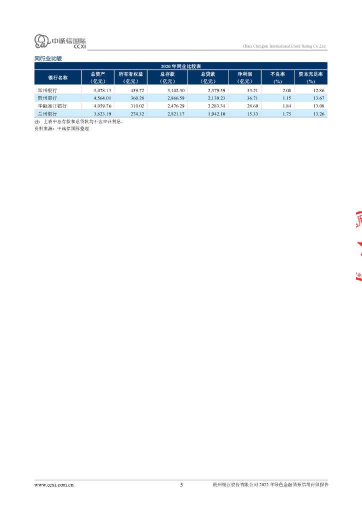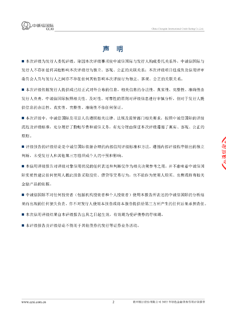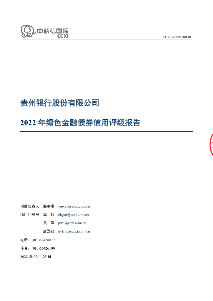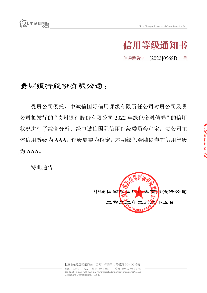 中诚信:贵州银行股份有限公司2022年绿色金融债券信用评级报告.pdf