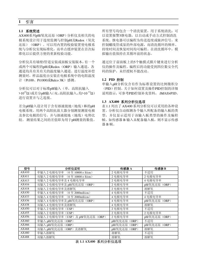 pH/氧化还原(ORP) 用单输入及双输入分析仪 AX416, AX436, AX460 , AX466 及 AX468 型用户指南.pdf
