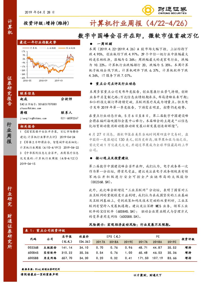 财通证券:计算机行业周报:数字中国峰会召开在即,微软市值首破万亿.pdf