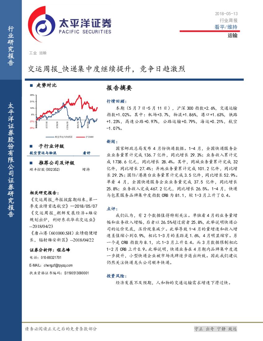 太平洋证券:交运周报:快递集中度继续提升,竞争日趋激烈.pdf