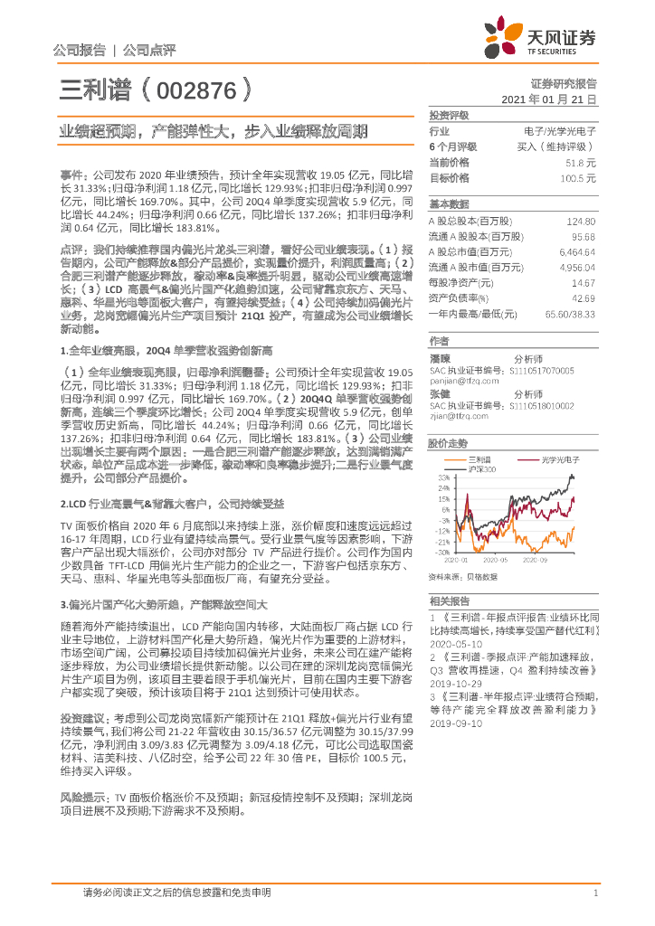 天风证券:三利谱(002876)-业绩超预期,产能弹性大,步入业绩释放周期.pdf