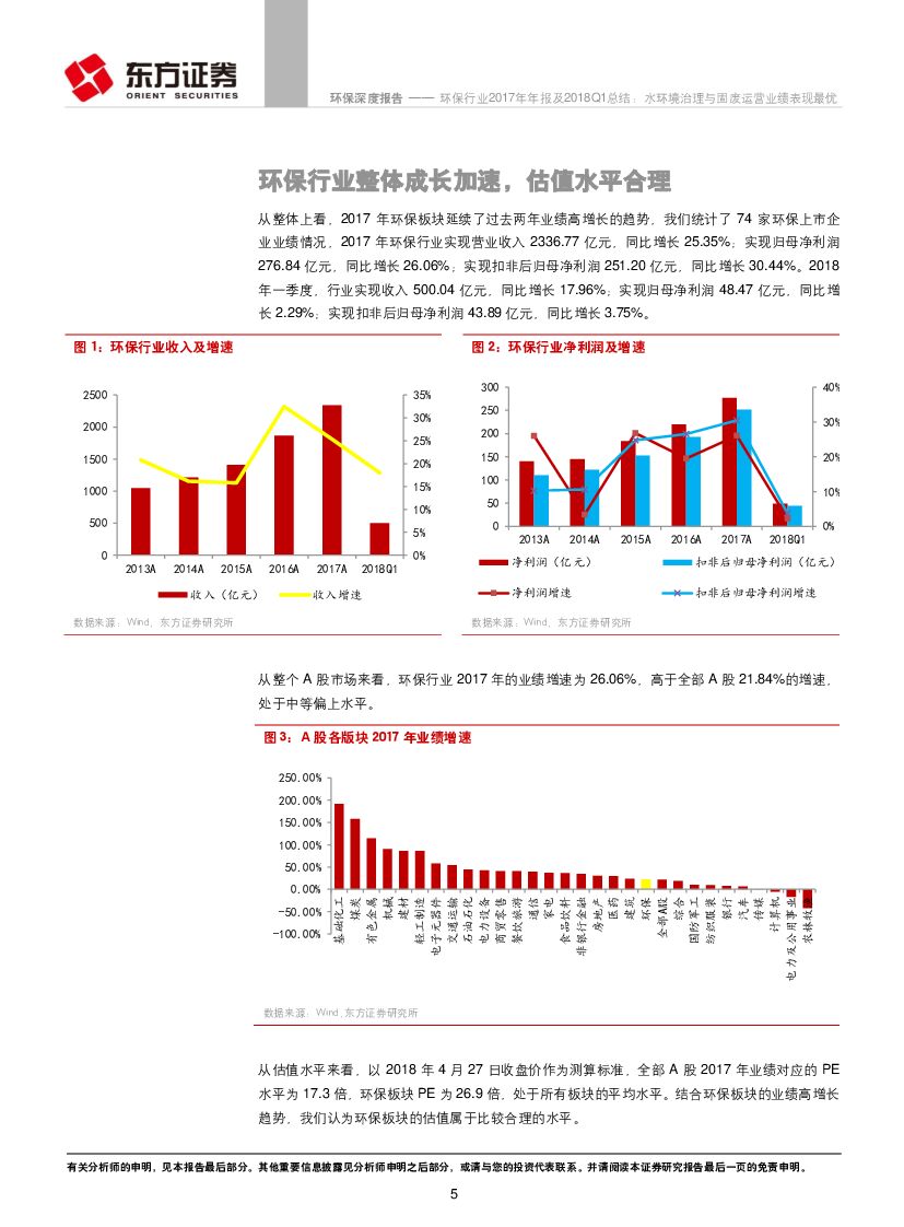 东方证券:环保行业2017年年报及2018Q1总结:水环境治理与固废运营业绩表现最优.pdf