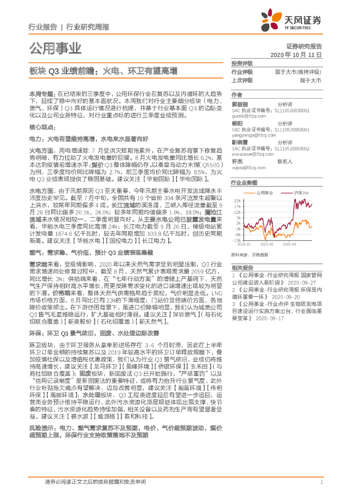天风证券:公用事业行业研究周报:板块Q3业绩前瞻:火电、环卫有望高增.pdf