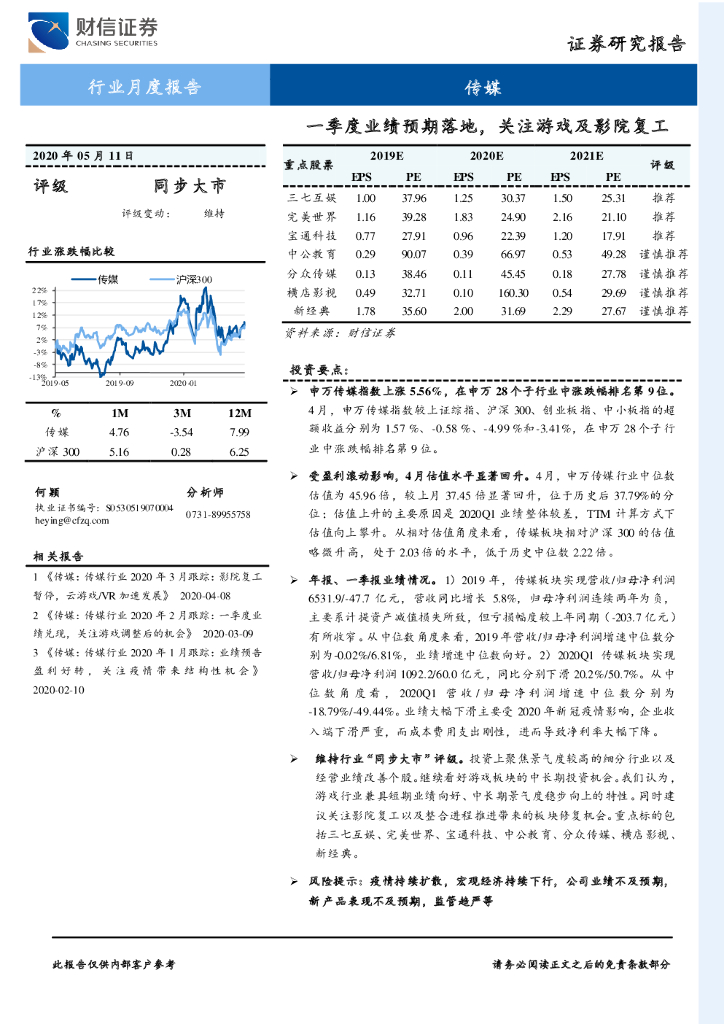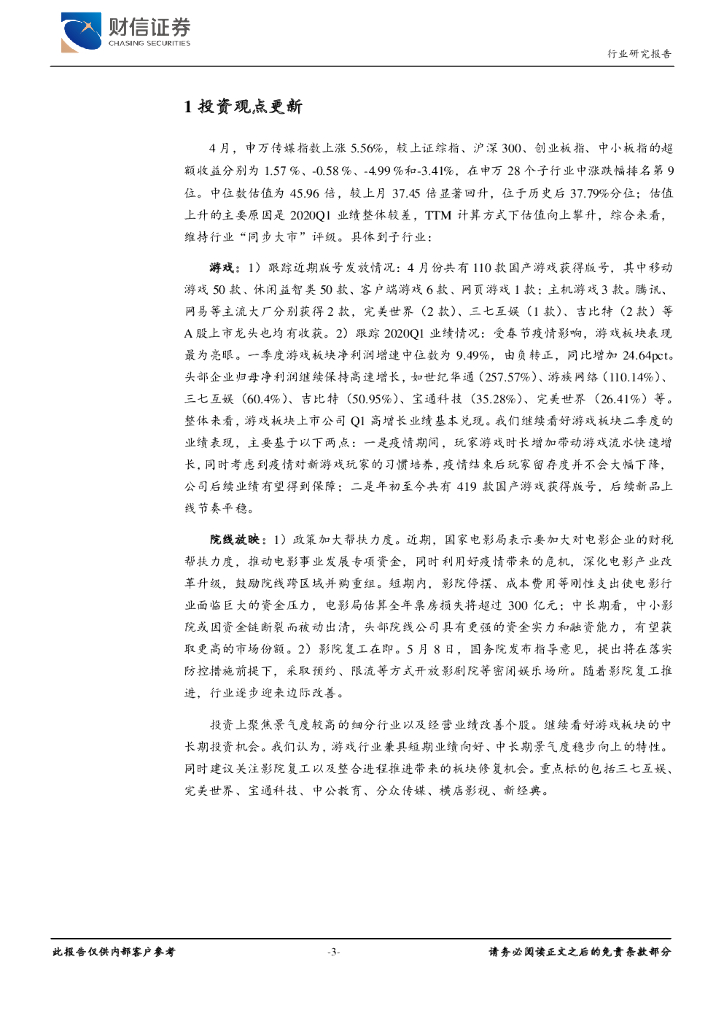 财信证券:传媒行业月度报告:一季度业绩预期落地,关注游戏及影院复工.pdf