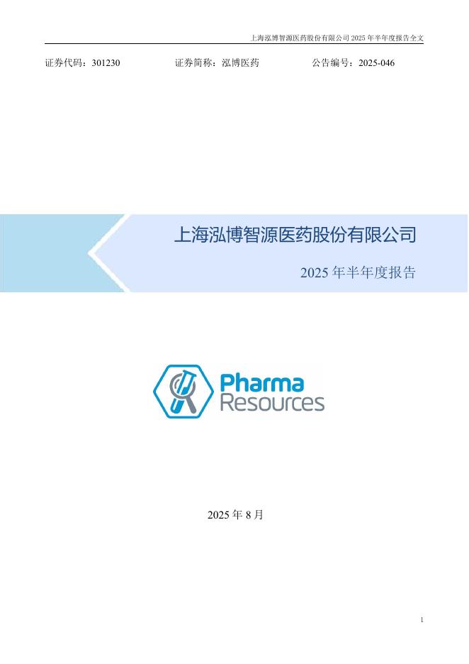 301230-泓博医药:2025年半年度报告.pdf