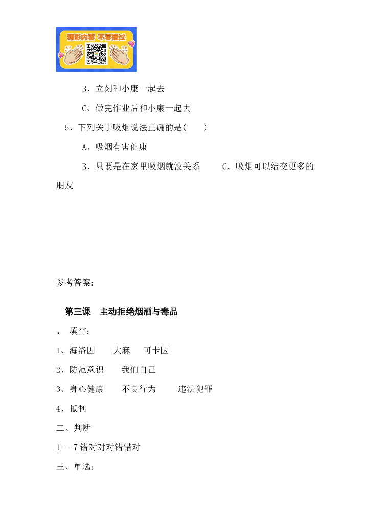 五年级上道德与法治一课一练 第三课(含答案).doc