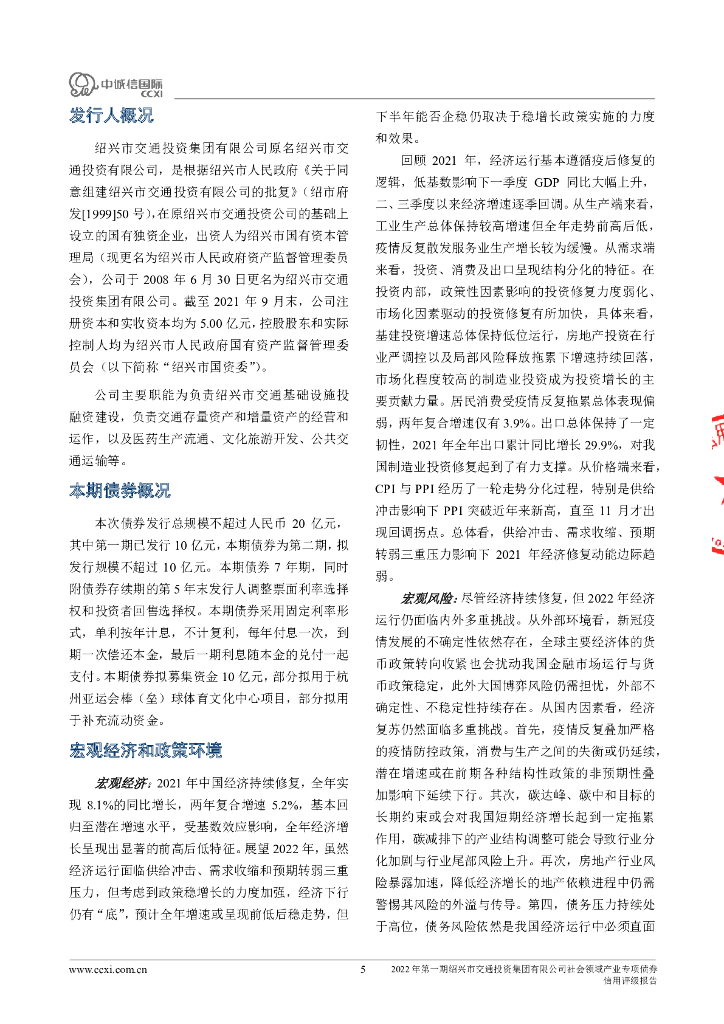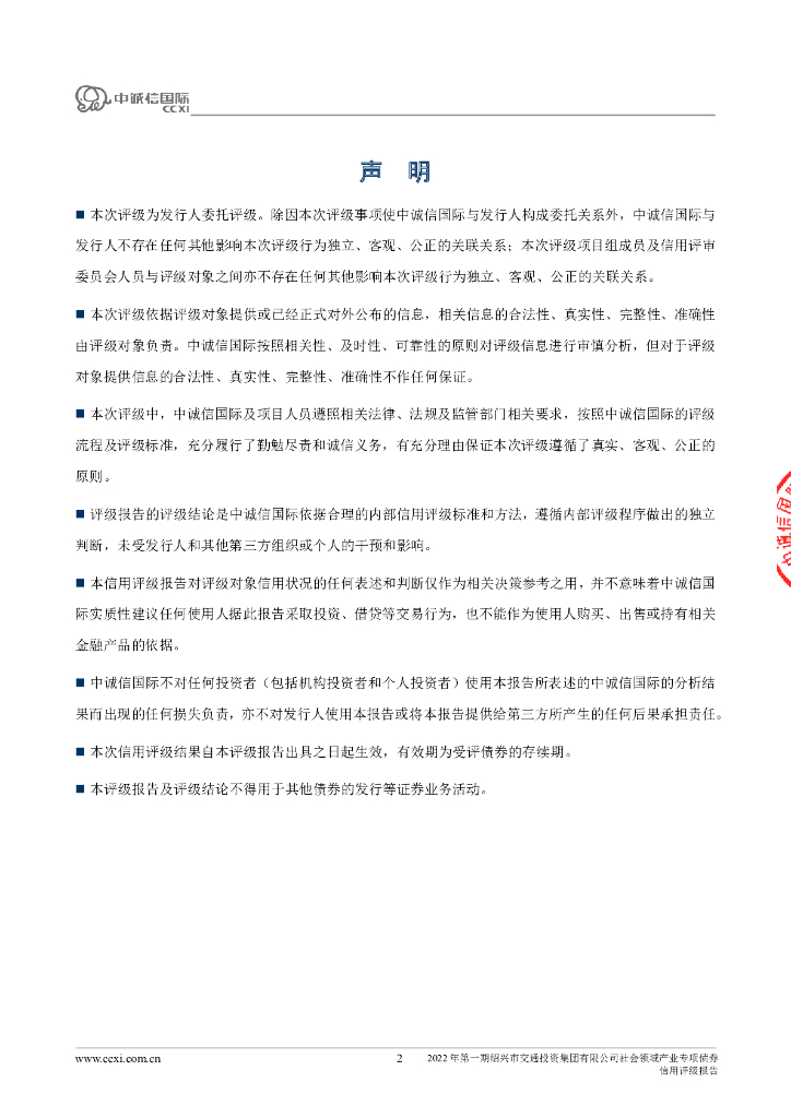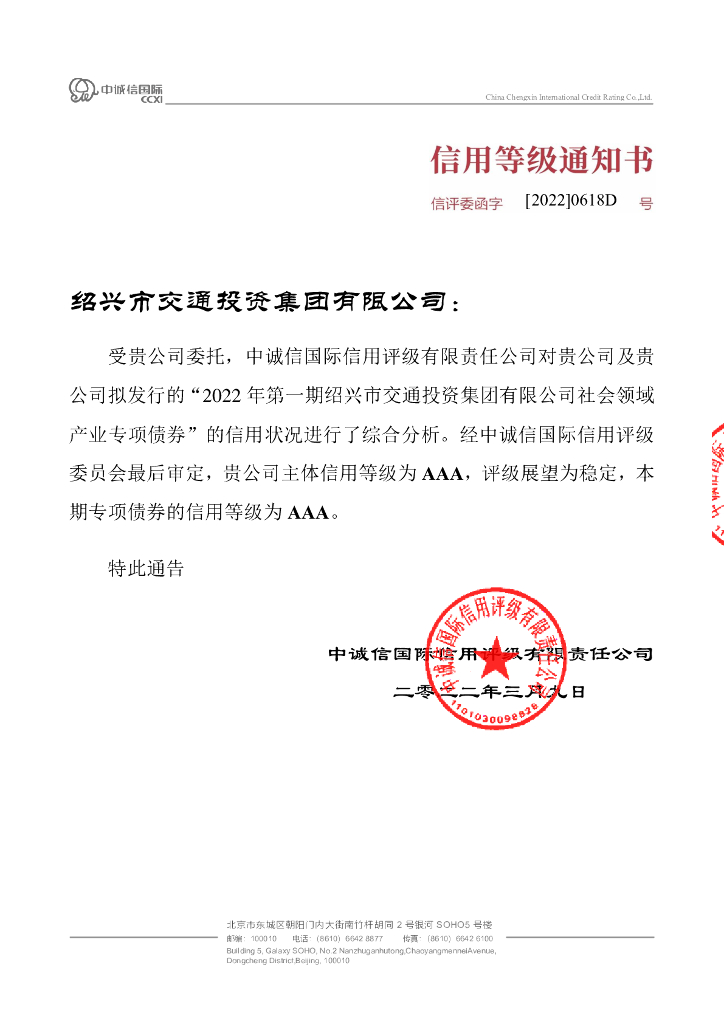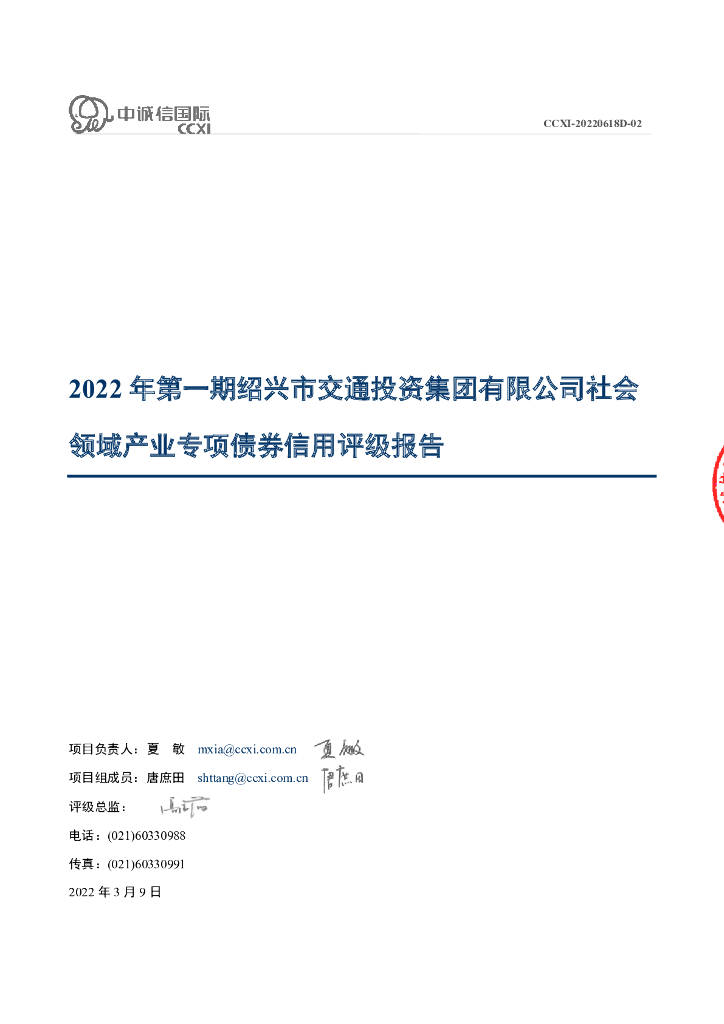 中诚信:2022年第一期绍兴市交通投资集团有限公司社会领域产业专项债券评级报告.pdf