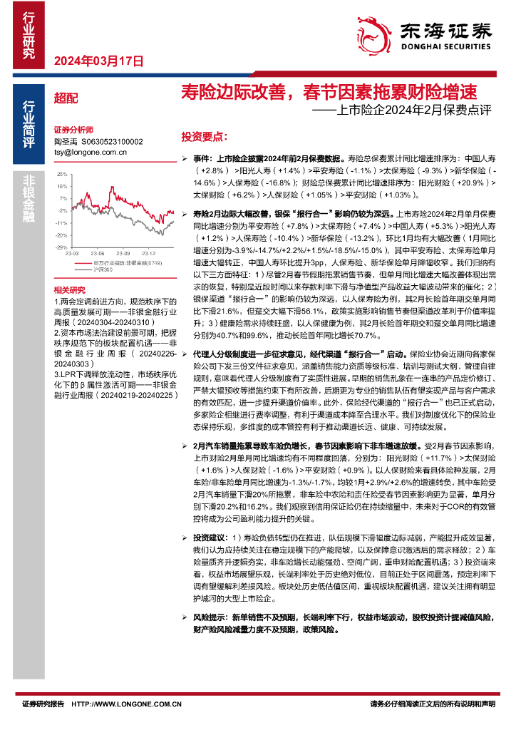 东海证券:上市险企2024年2月保费点评:寿险边际改善,春节因素拖累财险增速.pdf
