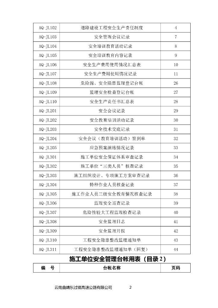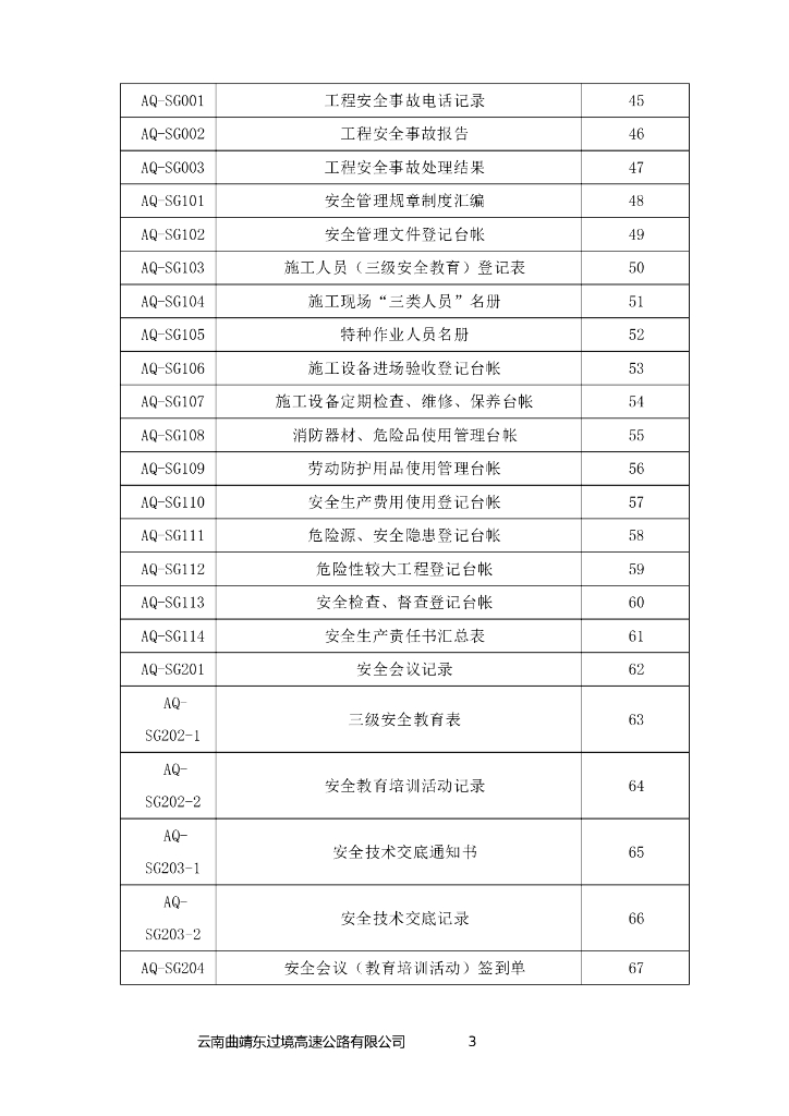 [云南]高速公路建设安全管理台帐用表(84页).doc