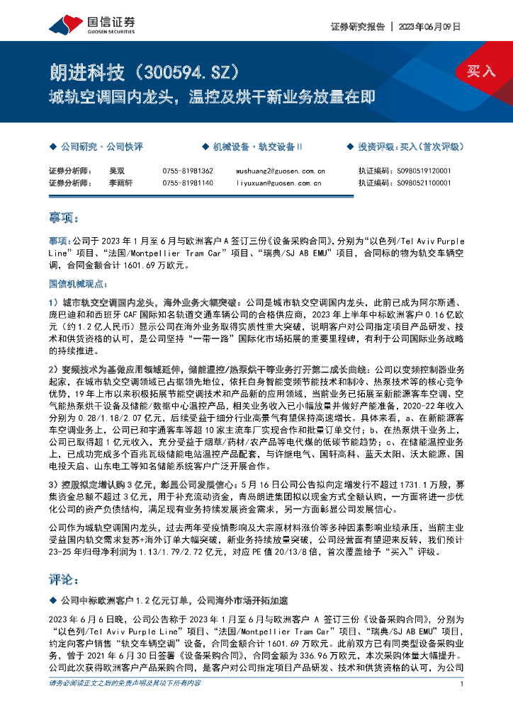 国信证券:朗进科技(300594)-城轨空调国内龙头,温控及烘干新业务放量在即.pdf