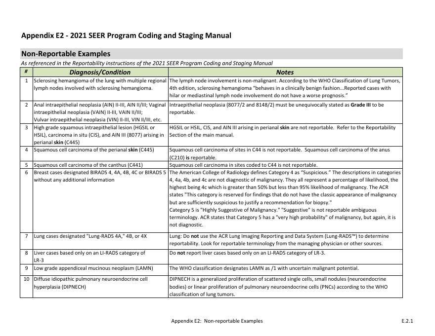 2021 SEER 编码和分期手册可报告恶性肿瘤示例.pdf