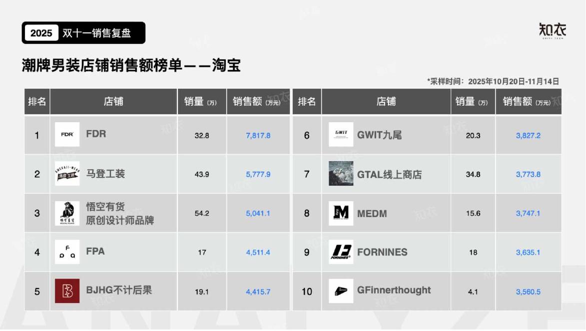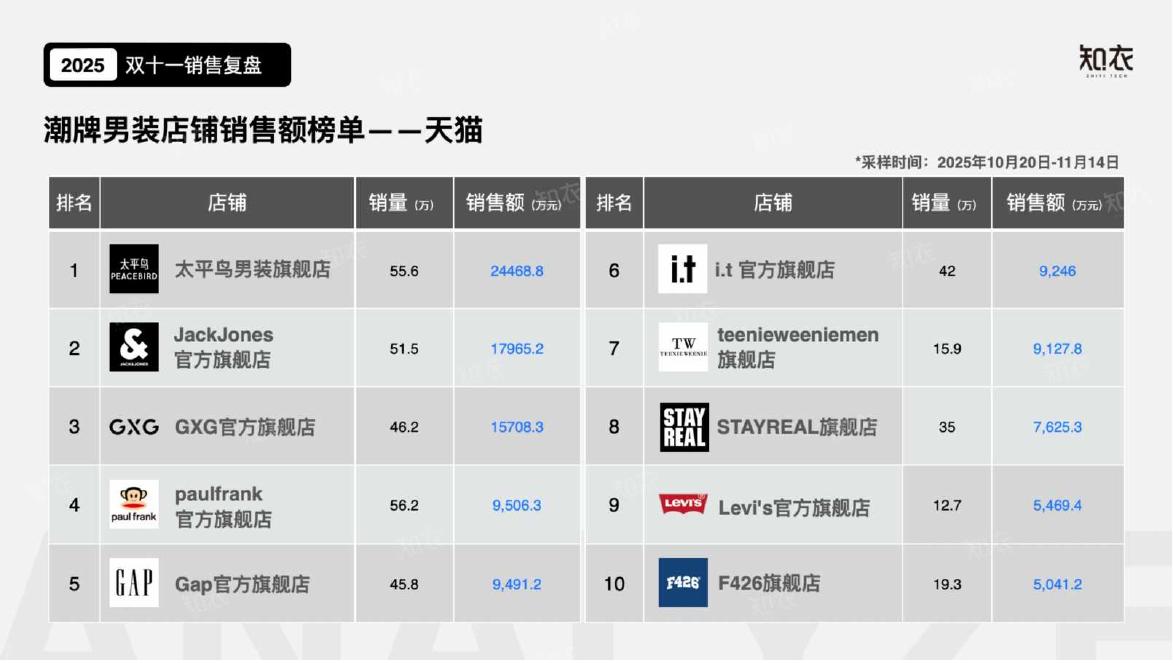 知衣数据:2025“双十一”整体销售复盘-潮牌男装.pdf